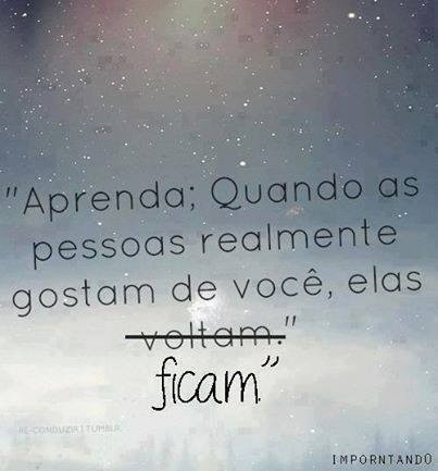 "Aprenda; Quando as pessoas gostam realmente de si, elas ficam."