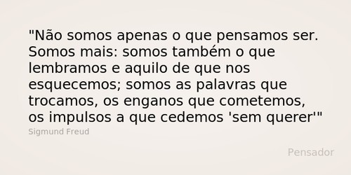 Somos mais: somos também o que lembramos e aquilo de que nos esquecemos; somos as palavras que trocamos, os enganos que cometemos, os impulsos a que cedemos 'sem querer'."