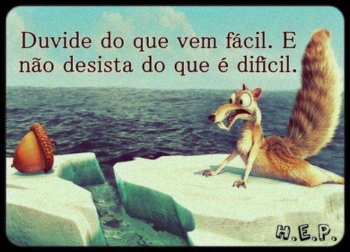 "Duvide do que vem fácil. E não desista do que é difícil."