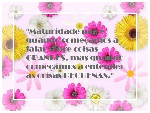 "Maturidade não é quando começamos a falar sobre coisas GRANDES, mas quando começamos a entender as coisas PEQUENAS."