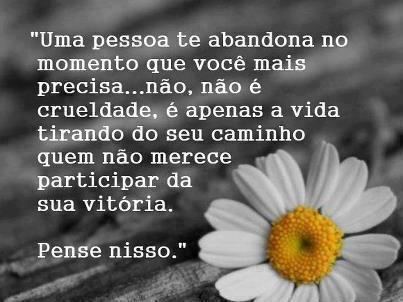 "Uma pessoa abandona-te no momento em que você mais precisa... não, não é crueldade, é apenas a vida tirando do seu caminho que não merece participar da sua vitória.