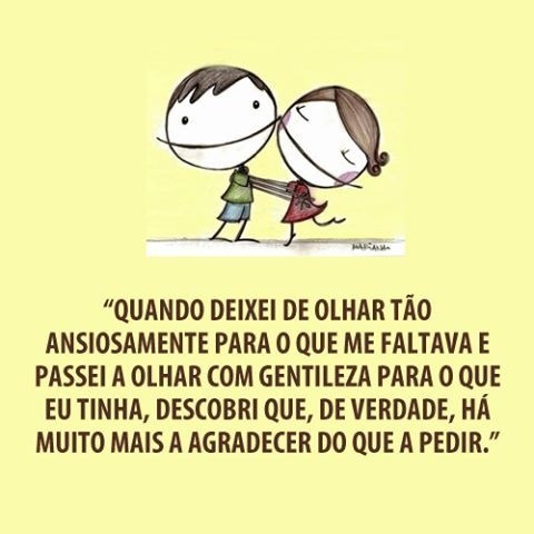 "Quando deixei de olhar tão ansiosamente para o que me faltava e passei a olhar com gentileza para o que eu tinha, descobri que, de verdade, há muito mais a agradecer do que a pedir."