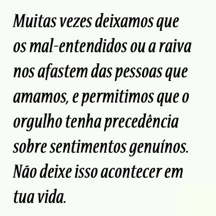 "Muitas vezes deixamos que mal entendidos ou raiva nos afastem das pessoas que amamos, e permitimos que o orgulho tenha precedência sobre sentimentos genuínos. Não deixe isso acontecer na sua vida."