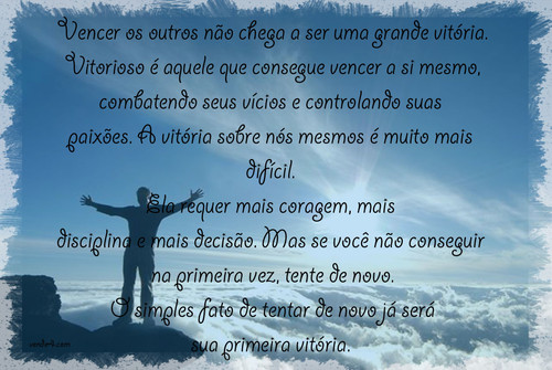 Vitorioso é aquele que consegue vencer a si mesmo, combatendo os seus vícios e controlando as suas paixões. A vitória sobre nós mesmos é muito mais difícil.