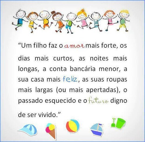 "Um filho faz o amor mais forte, os dias mais curtos, as noites mais longas, a conta bancária menor, a sua casa mais feliz, as suas roupas mais largas (ou mais apertadas), o passado esquecido e o futuro digno de ser vivido."