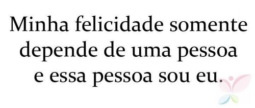 "Minha felicidade somente depende de uma pessoa e essa pessoa sou eu."
