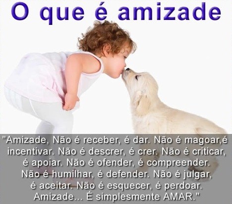 "Amizade, não é receber, é dar. Não é magoar, é incentivar. Não é descrer, é crer. Não é criticar, é apoiar. Não é ofender, é compreender. Não é humilhar, é defender. Não é julgar, é aceitar. Não é esquecer, é perdoar. Amizade... É simplesmente Amar."