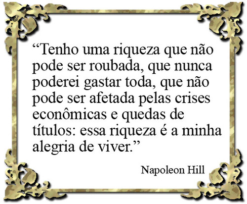 "Tenho uma riqueza que não pode ser roubada, que nunca poderei gastar toda, que não pode ser afetada pelas crises económicas e quedas de títulos: essa riqueza é a minha alegria de viver."