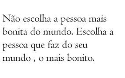 E assim é..."Não escolha a pessoa mais bonita do mundo. Escolha a pessoa que faz do seu mundo, o mais bonito."