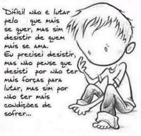 Eu precisei desistir, mas não pense que desisti por não ter mais forças para lutar, mas sim por não ter mais condições de sofrer..."